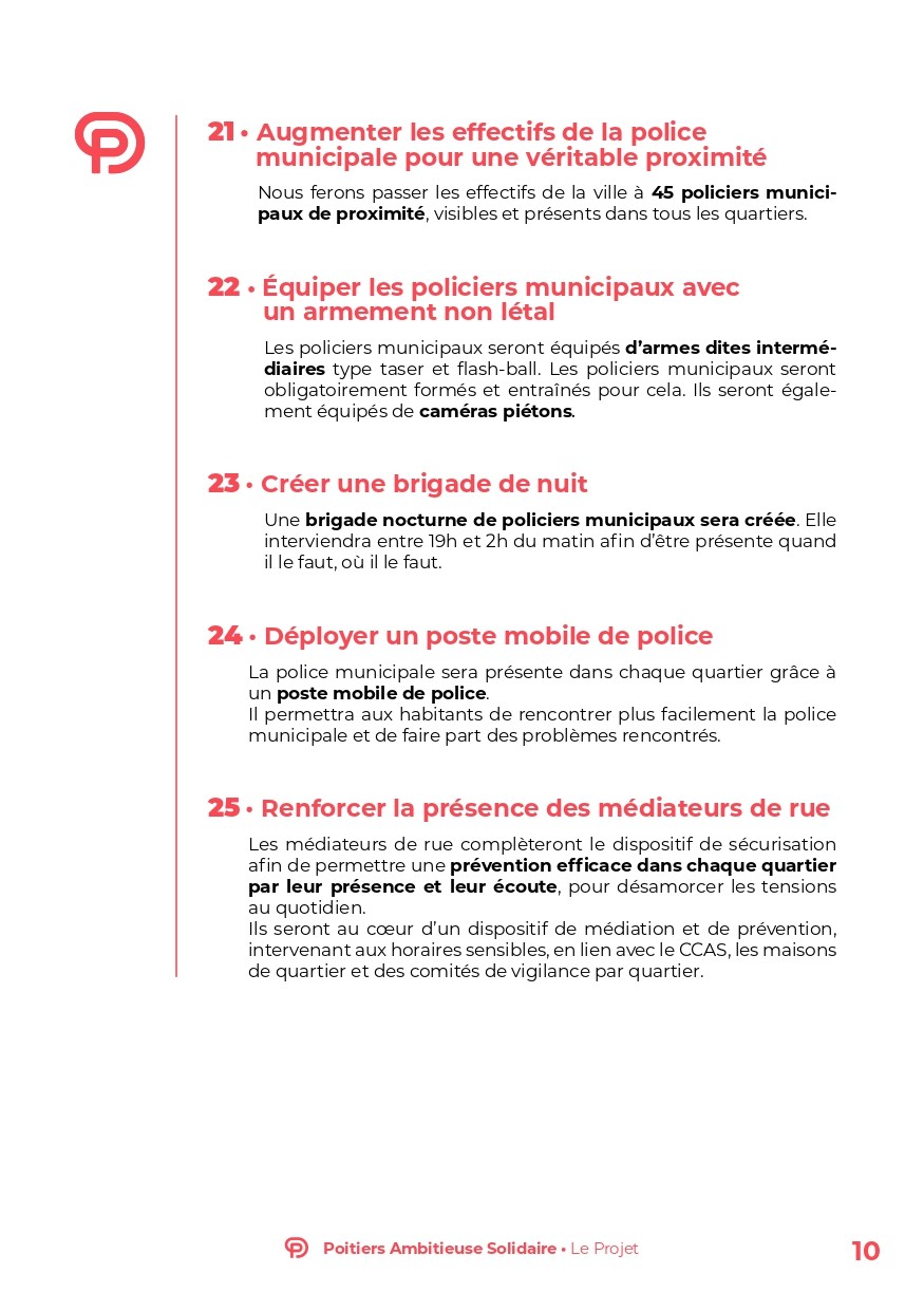 La sécurité sera une priorité de mandat pour une ville plus protectrice et plus tolérante avec 3 engagements prioritaires: